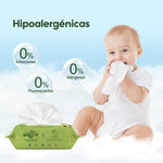 Nuestras toallitas para bebés están elaboradas con fibras biodegradables de primera calidad y están enriquecidas con una fórmula suave, 99% natural, libre de químicos agresivos, fragancias y alcohol.