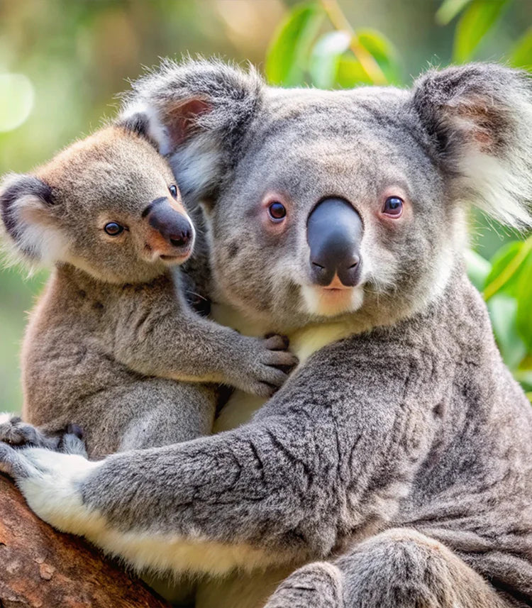 Al igual que nuestra mascota, las mamás koalas tienen un marsupio especial que proporciona un refugio seguro para sus crías. Como una gominola rosa, cada koalita se posa en el marsupio de su madre para recibir el amor y la nutrición que necesita para crecer.